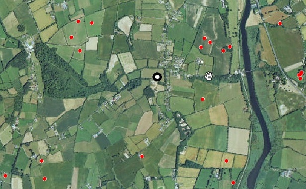 Although there are no recorded archaeological monuments in the field where the saddle quern was found, the artefact is indicative of past human activity at this location and it seems likely that there is a yet undiscovered settlement site here. In the surrounding landscape there are number of possible contemporary Bronze Age sites (see above map). These include a group of enclosures located c. 400m to the northeast, a second cluster of enclosures situated c. 500m to northwest, a possible fulacht fiadh located roughly 500m to the south and a large hillfort which is approximately 1.2km to the southeast.